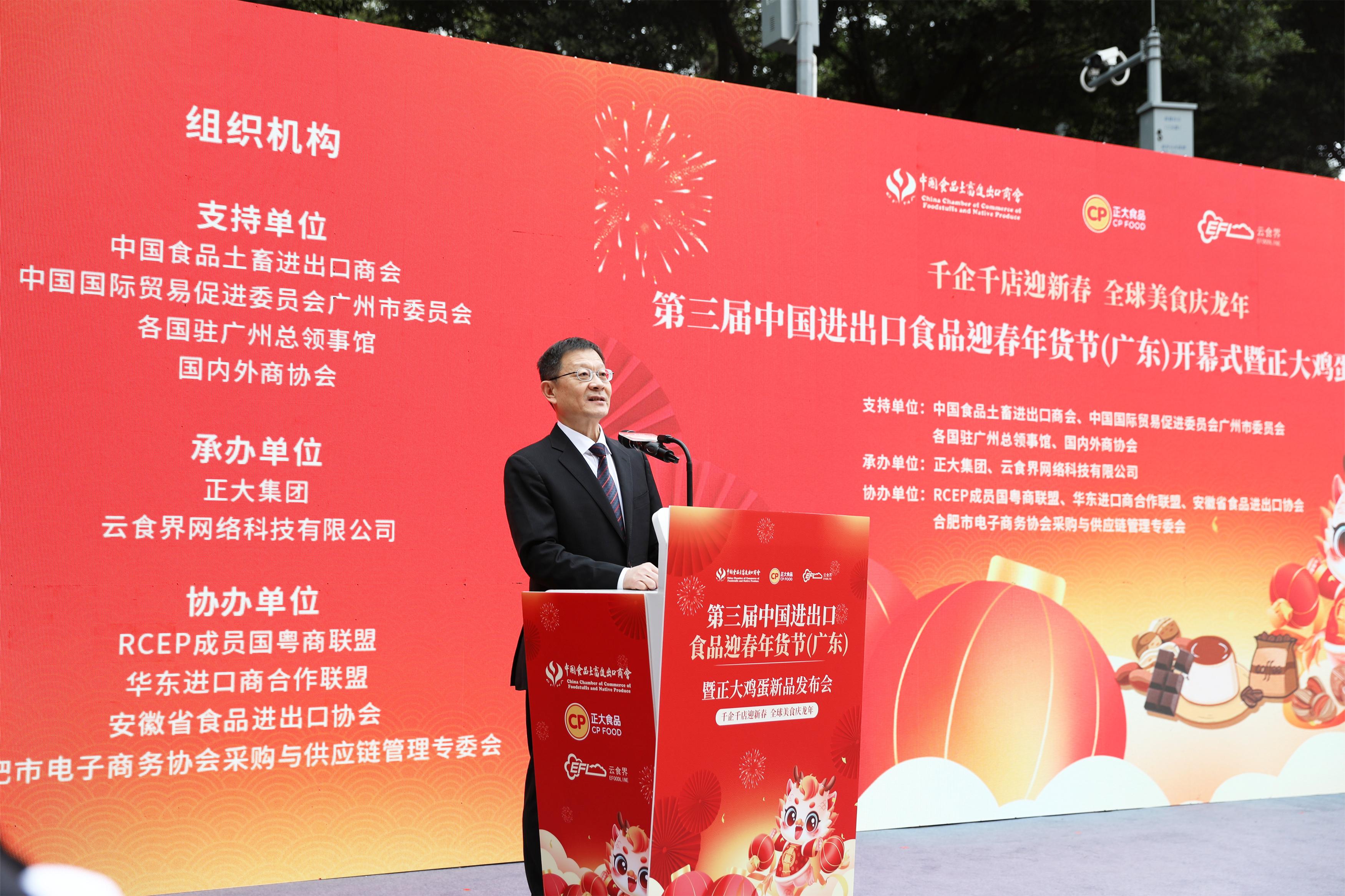 1月22日,曹德荣会长出席了在广州举办的“第三届中国进出口食品迎春年货节”开幕式并致辞。