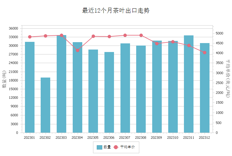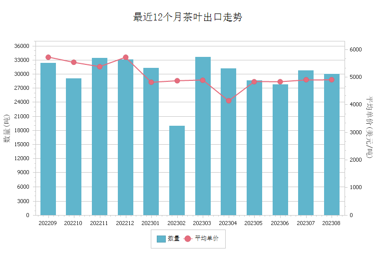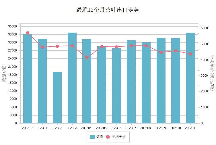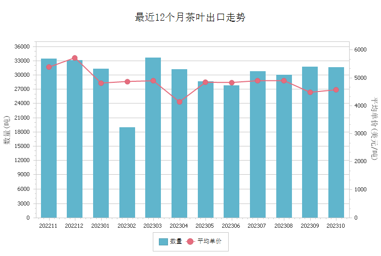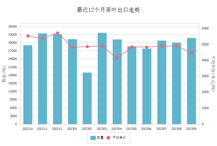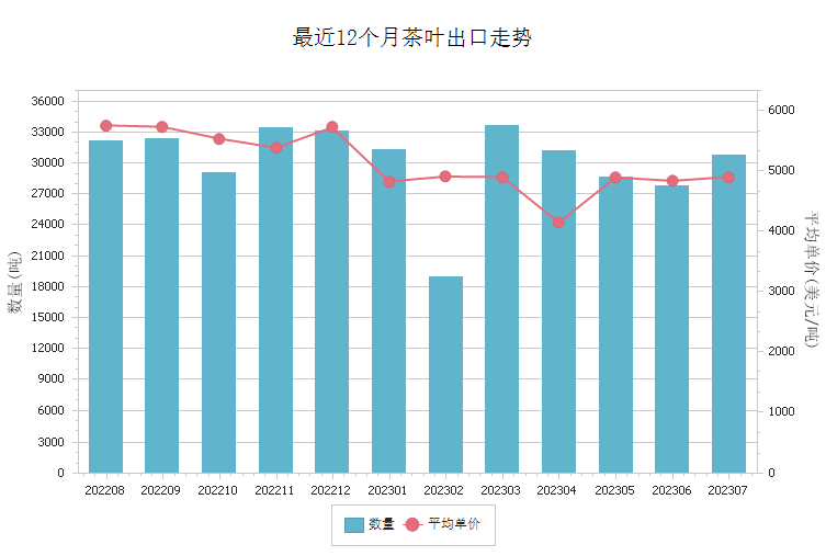 商品出口走势图 - 茶叶(2023年7-12月)